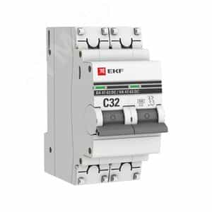 Автоматический выключатель 2P 32А (C) 6кА ВА 47-63 DC EKF PROxima (mcb4763-DC-2-32C-pro)