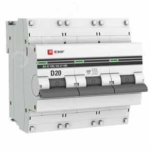 Автоматический выключатель 3P 20А (D) 10kA ВА 47-100 EKF PROxima (mcb47100-3-20D-pro)