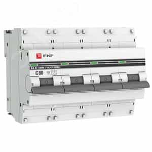 Автоматический выключатель 4P 80А (C) 10kA ВА 47-100M с электромагнитным расцепителем EKF PROxima (mcb47100m-4-80C-pro)